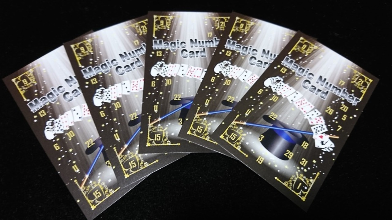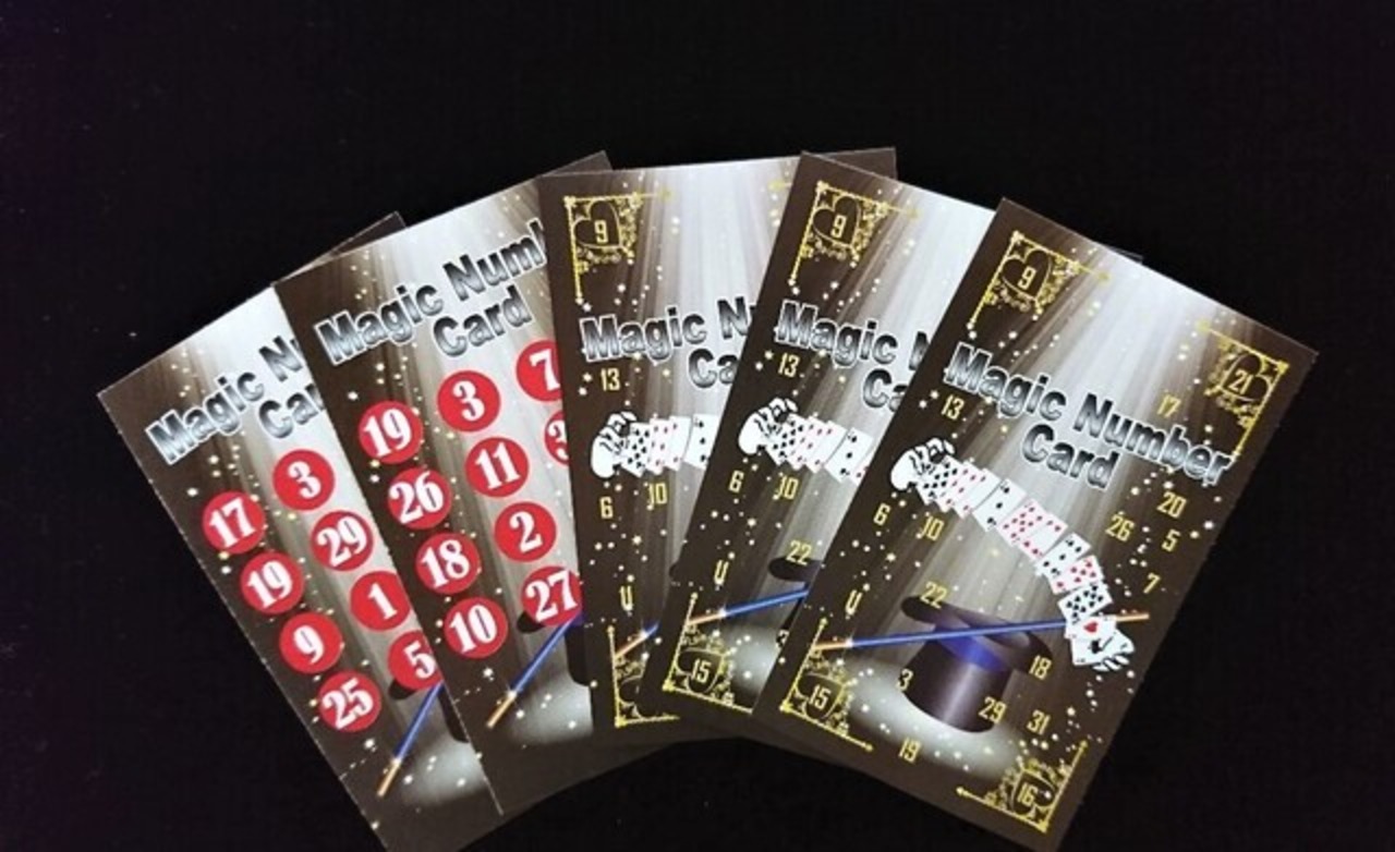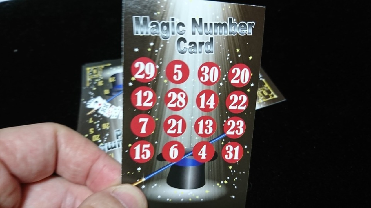 片面に数字がランダムに印刷された、名刺サイズの5枚のカードで、相手しかしらない1~31の数字なら何でも予言できるマジックグッズです。